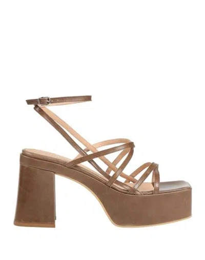 Fru. It Woman Sandals Khaki Size 8 Leather In Brown