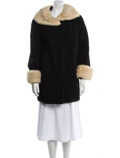 Pre-owned Persian Lamb Colorblock Pattern Coat In Black