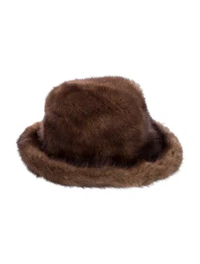 Pre-owned Embellished Mink Bucket Hat In Brown