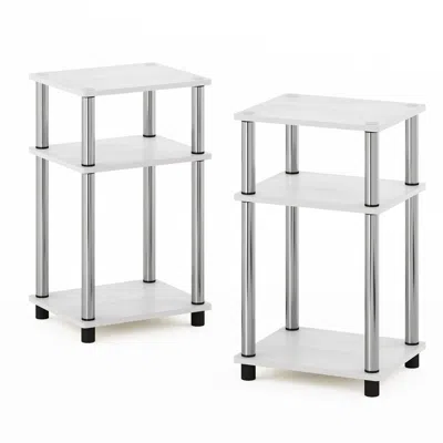 Just 3-tier Turn-n-tube Usb And Type-c Charging Port End Table, Set Of 2 In White