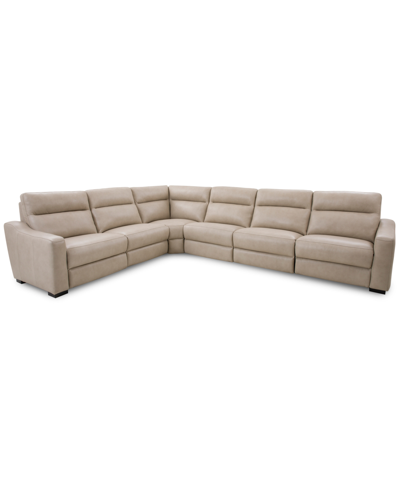 Gabrine 6-pc. Leather Sectional With 3 Power Headrests, Created For Macy's In Neutral