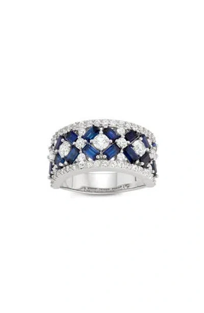 Sterling Silver Lab Grown Blue Sapphire & White Sapphire Ring