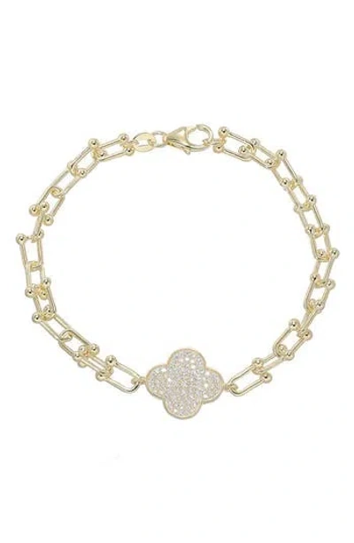 Cz Pavé Clover Bracelet In Gold