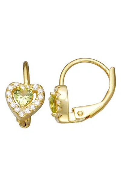 Kids' 14k Gold Plated Sterling Silver Birthstone Lever Back Earrings In Peridot