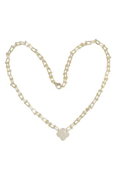 Cubic Zirconia Clover Necklace In Yellow Gold