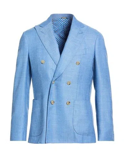 Man Blazer Light Blue Size 46 Wool, Silk, Linen