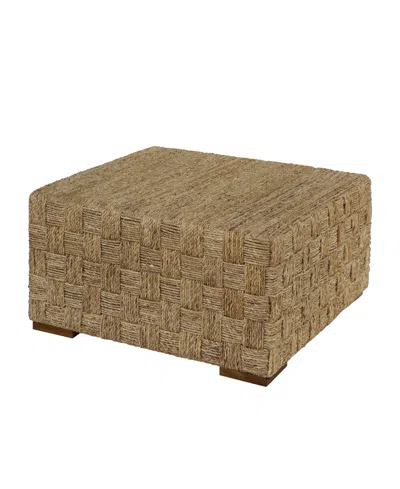 Bali Breeze Square Flared Storage Table, Ottoman In Whitewash Patina