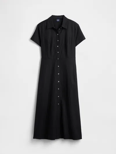 Linen-blend Midi Shirtdress In Black