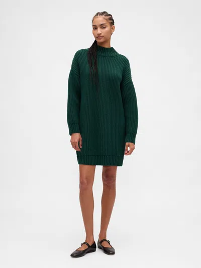 Oversized Turtleneck Mini Sweater Dress In Green