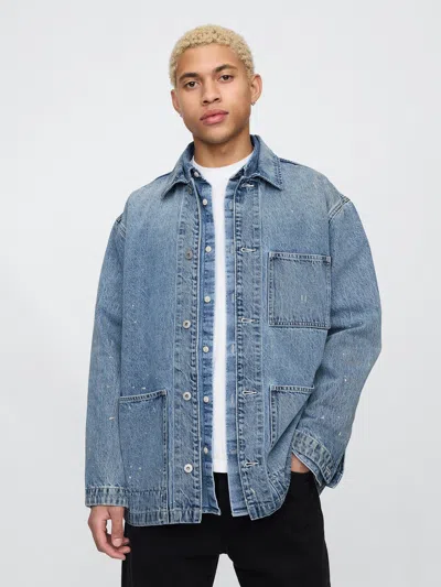 Painted Denim Chore Jacket In Medium Wash