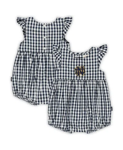 Girl's Baby Boys And Girls Navy Notre Dame Fighting Irish Cara Gingham Ruffled Bodysuit In Blue