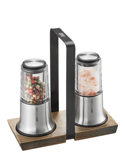Stainless Steel With Ceramic Grinder Satin Finish Small Salt And Pepper Mill Set In Silver