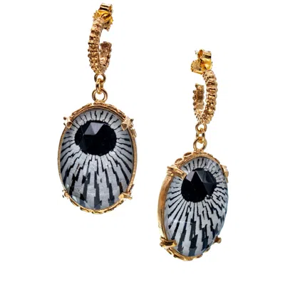 Women's Gold / Black / White Goldplated Cosmic Earrings White In Multi