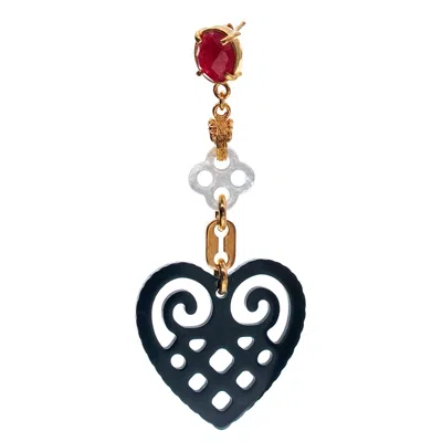 Women's Gold / Red / Black Single Heart Earring Gold Plated