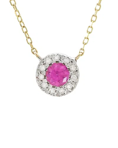 14k Diamond .10 Ct. & .44 Ct. Pink Tourmaline Pendant Necklace