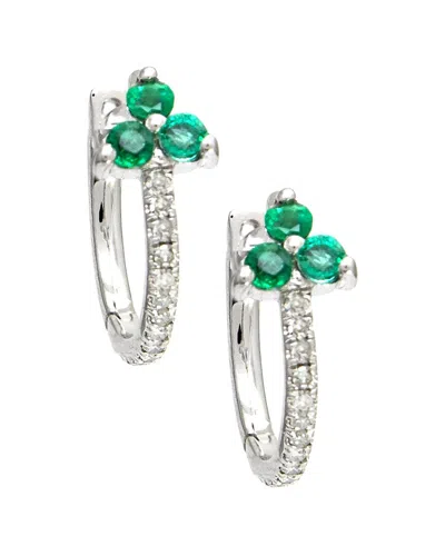 14k 0.20 Ct. Tw. Diamond & Emerald Earrings In Metallic