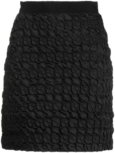 Floral-jacquard Puff-sleeve Organza Blouse In Green