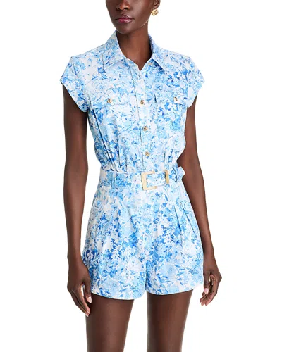 Morgan Floral Poplin Romper In Zesty Fl White/blue