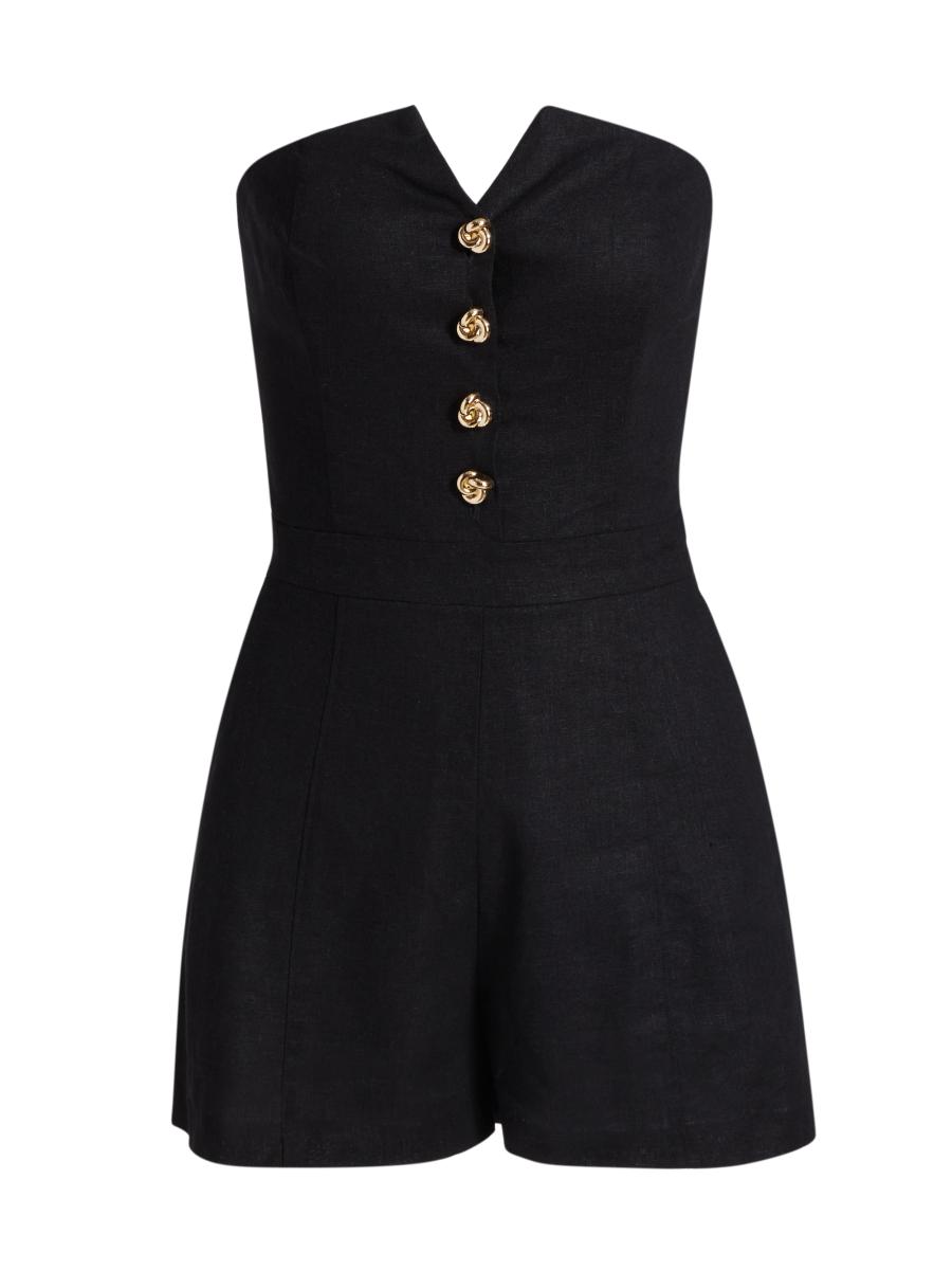 Women's Carine Strapless Linen Romper In Black
