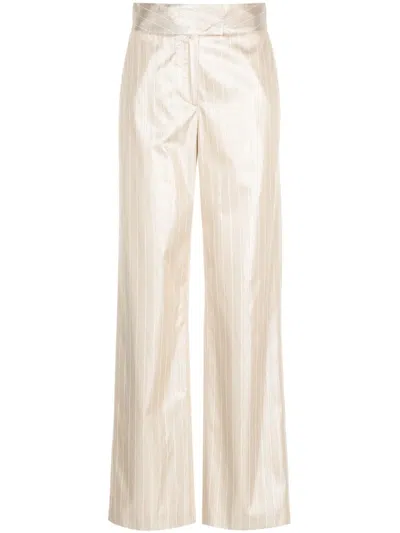 Pinstripe-pattern Wide-leg Trousers In Gold