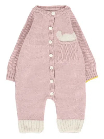 Babies' Button-fastening Knitted Romper In Pink
