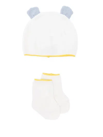 Babies' Cashmere Socks And Beanie Set In White