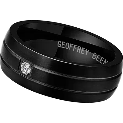 Brushed Stainless Steel Cubic Zirconia Band Ring In Black