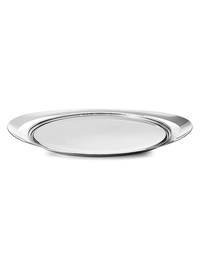 Cobra Removable Leather Inlawy Stainless Steel Handle Serving Tray In Silver-tone
