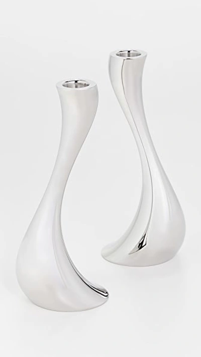 Hand Polished Palladium-plated Moon Candleholder In Silver