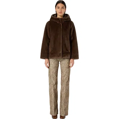 Morgane Hooded Faux Fur Coat In Brown