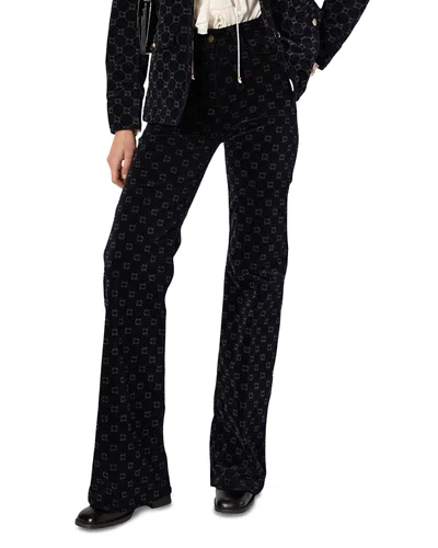 Anna Monogrammed Flared Jeans In Navy In Blue