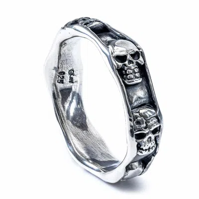 Men's Noctis Handcrafted Silver Ring With Stamped Skull Design In Metallic