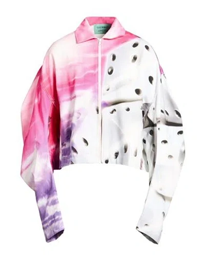 White & Purple Printed Moto Denim Jacket In White/black/purple