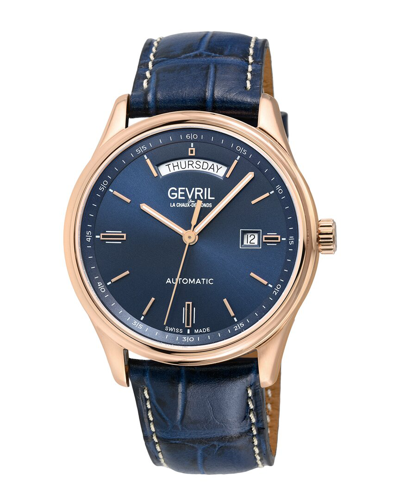 Men's Excelsior Swiss Automatic Blue Leather Watch 42mm In Blue / Gold Tone / Rose / Rose Gold Tone