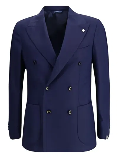 Double-breasted Jacket In Virgin Wool In Blue