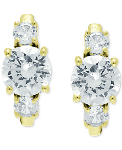 Cubic Zirconia Three Stone Small Huggie Hoop Earrings, 0.625", Created For Macy's In Gold Over Silver