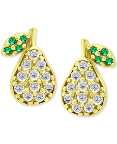 Cubic Zirconia & Green Quartz Pear Stud Earrings, Created For Macy's In Gold Over Silver