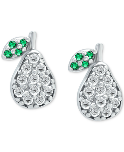 Cubic Zirconia & Green Quartz Pear Stud Earrings, Created For Macy's In Sterling Silver