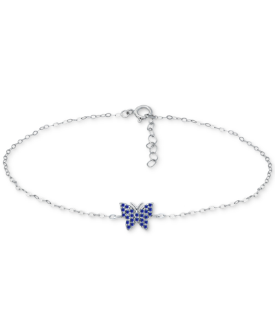 Blue Cubic Zirconia Butterfly Ankle Bracelet, Created For Macy's In Sterling Silver