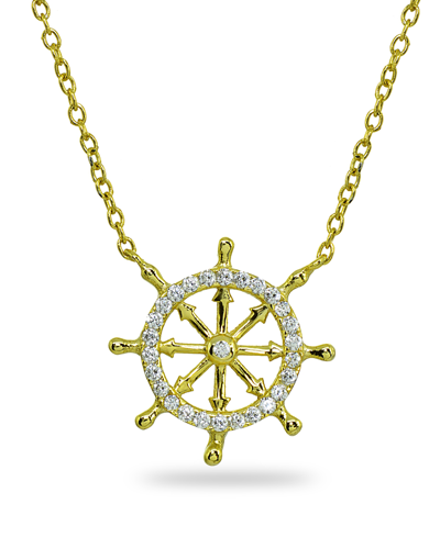 Cubic Zirconia Ship's Wheel Necklace In Sterling Silver Or 18k Gold Over Sterling Silver In Gold Over Silver