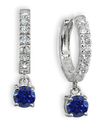 Color Cubic Zirconia Dangle Drop Huggie Hoop Earring In Sterling Silver In Dark Blue