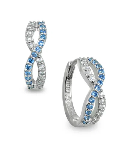 White And Blue Cubic Zirconia Infinity Huggie Hoop Earrings In Sterling Silver In Silver,blue