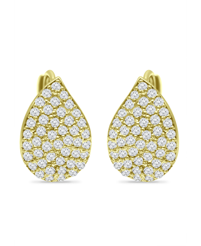 Pave Teardrop Cubic Zirconia Huggie Hoop Earrings, Sterling Silver Or 18k Gold Over Silver