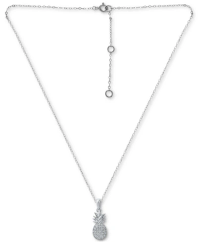 Cubic Zirconia Pineapple Pendant Necklace In Sterling Silver, 16" + 2" Extender, Created For Macy's