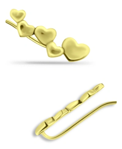 Heart Ear Crawler Earrings In 18k Gold Over Sterling Silver Or Sterling Silver In Gold Over Silver