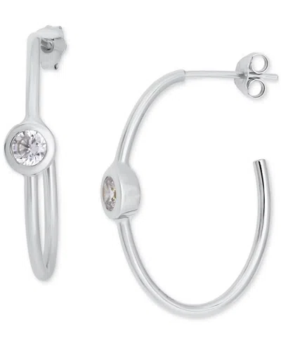 Cubic Zirconia Bezel Small Hoop Earrings, 0.78", Exclusively At Macy's In Silver