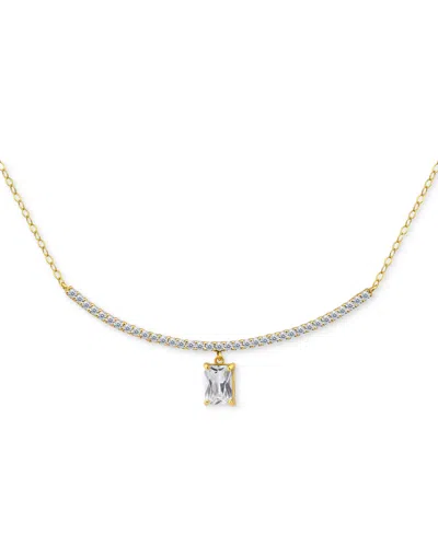 Cubic Zirconia Curved Bar Baguette Pendant Necklace, 16" + 2" Extender In Gold