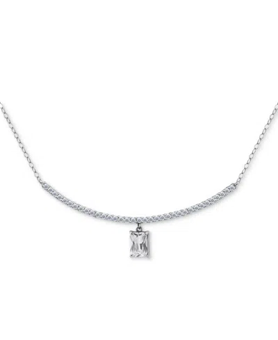 Cubic Zirconia Curved Bar Baguette Pendant Necklace, 16" + 2" Extender In Metallic
