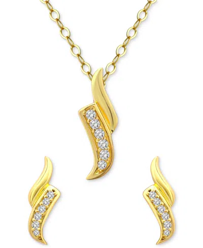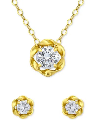 2-pc. Set Cubic Zirconia Swirl Pendant Necklace & Matching Stud Earrings In 18k Gold-plated Sterling