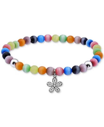 Cubic Zirconia & Multicolor Catseye Flower Dangle Stretch Bracelet In Sterling Silver, Created For M